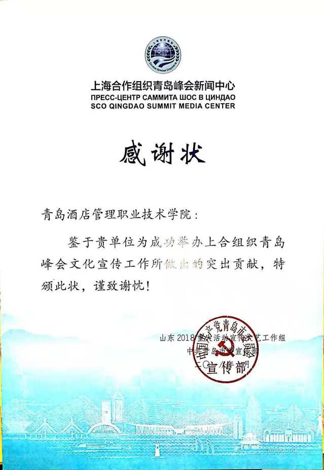 本网讯(旅游与酒店管理学院 白星宇)10月7日,中共青岛市委宣传部为上合峰会期间在青岛峰会新闻中心参加志愿服务的同学送来了感谢信,高度赞誉英国威廉希尔唯一官网为成功举办上合组织青岛峰会文化宣传工作所做出的突出贡献。