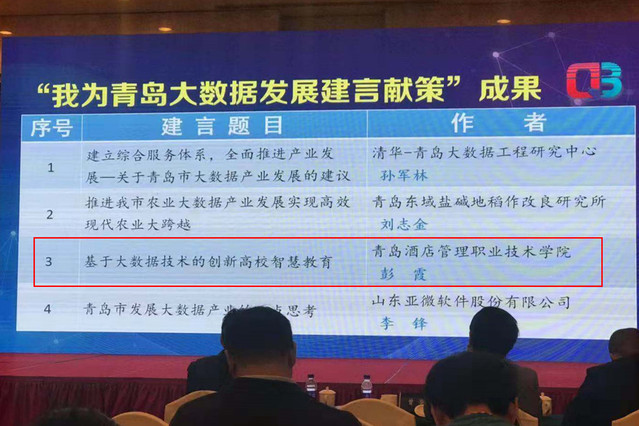 此次获奖说明了威廉希尔官网紧跟国家大数据战略及青岛市数据建市的方向,科学设置专业、认真组织教师进行课题研究,取得了丰硕成果,得到了社会认可。本次获奖得了人民网等主流媒体报道。