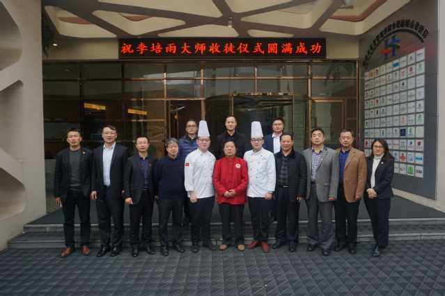 本网讯(烹饪学院 李文武)12月6日,李培雨大师收徒仪式在旅游与酒店管理学院实训中心举行,烹饪学院纪成、丁德龙向李培雨拜师,结成师徒关系,开启了行业和学院在师资培养上双融合、双育人的新篇章。学院党委副书记于敏、副院长宫恩龙,烹饪学院院长王建明、党总支书记石增业、副院长王志兴,烹饪学院部分教师和学生代表参加仪式。