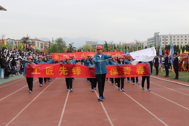 开幕式上,伴随着雄壮有力的《运动员进行曲》,各方队迈着整齐矫健的步伐、喊着铿锵有力的口号,精神抖擞、意气昂扬地走过主席台,接受学院领导和全院师生的检阅。