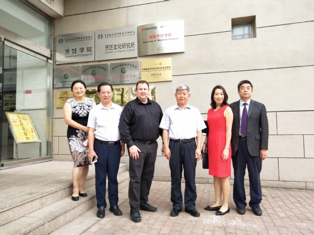 加拿大卡纳多学院中国办公室主任王芳、学院国际交流与合作处处长周莉、烹饪学院院长王建明、烹饪学院党总支书记石增业等一同参加上述活动。