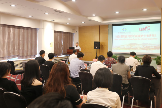 学院与南澳技术与继续教育学院自2015年起建立友好合作关系,本着资源共享、合作共赢的原则,双方进行了多次的互访和交流,去年,双方正式签署姊妹校合作备忘录,举办了姊妹院校揭牌仪式。同年5月,学院与南澳技术与继续教育学院申办的酒店管理专业专科中外合作办学项目,以专科第一名的成绩获得山东省教育厅的审批,这也成为南澳州与山东省友好省州间职业教育合作的第一个落地和最富有成果的项目。学院为该合作办学项目作了充分的准备工作,共有21名教师通过了澳大利亚TAE四级证书培训,9名专业教师赴南澳技术与继续教育学院进行了学期制的学习,这些都为办好酒店管理专业中澳班奠定了坚实的基础。