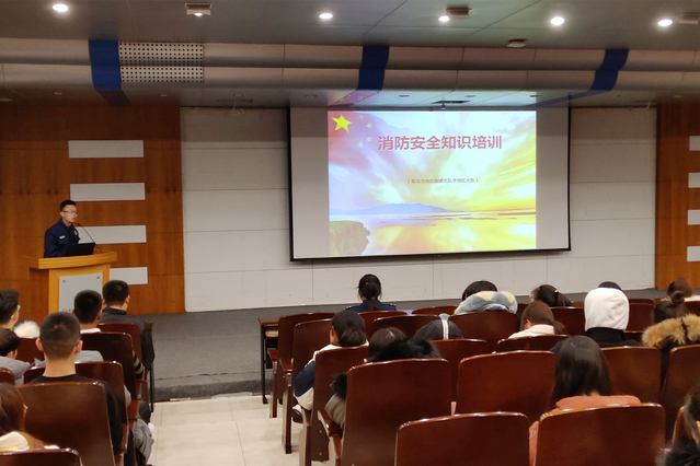 本网讯(安全保卫处 刘晓明)11月28日晚,安全保卫处邀请李沧区消防救援大队参谋苏昶怡和队长石博来校开展“校园消防安全”专题讲座。