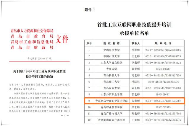 本网讯(继续教育学院 信息工程技术学院)近日,青岛市人社会局下发《关于开展首批工业互联网职业技能提升培训基地申报工作的通知》(青人社﹝2020﹞97号),学院入选青岛市首批18家工业互联网职业技能提升培训承接单位。