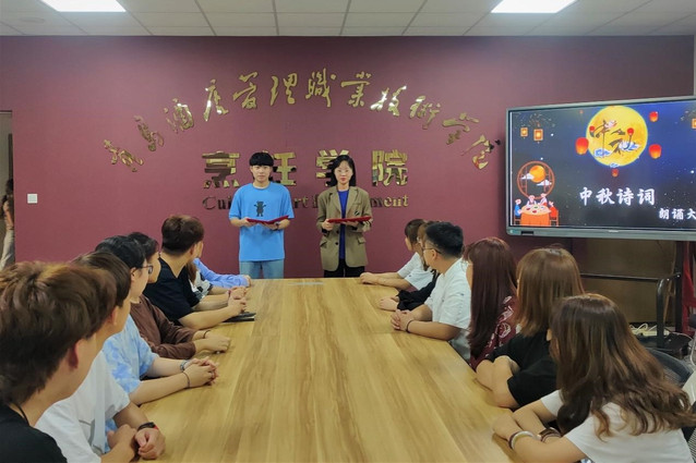 系列活动在“月圆中秋 诗意酒管”诗歌朗诵会中拉开了序幕。朗诵活动由《中秋吟咏》《故乡往昔》《国庆抒怀》三个篇章组成。同学们深情的朗诵演绎《祖国颂》《水调歌头》《面朝大海,春暖花开》等篇章,寄托了对中秋佳节的浓浓祝福,表达了对家乡与祖国的拳拳热爱之情。