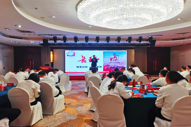 签约仪式结束后,酒店工程学院学生党支部书记娄帅为山东银座家居有限公司党组织书记及关键岗位管理人员培训班分享了《长征·情景沙盘推演》课程。该课程是酒店工程学院学生党支部自主研创的特色党建思政课程,与会人员纷纷表示,该课程特色鲜明,学起来有趣味,用起来更高效,有助于更加深入地了解中国共产党及其领导的革命事业从挫折走向胜利的苦难辉煌历程,更加深刻地领悟长征精神,激发传承红色基因的动能。
