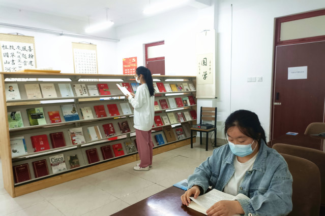 “小白杨”红色书屋由学校学生工作处、信息工程技术学院党总支利用公寓楼场地和图书资源精心打造而成,现有红色主题图书200余册,其中包含革命历史、英雄事迹、思想政治等多种类别的红色经典书籍,最大程度满足广大学生“足不出舍”便能学党史、诵经典、悟思想、践初心的阅读需求。