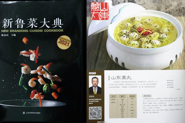 本网讯(烹饪学院 赵捷)近日,由中央广播电视总台山东总站、山东省文化和旅游厅、山东省旅游饭店协会主办的新鲁菜创新大赛颁奖典礼暨《新鲁菜大典》首发仪式活动在济南举行,由威廉希尔官网烹饪学院副院长王志兴主持的参赛菜品“山东蒸丸”入选《新鲁菜大典》,参赛菜品视频在“央视频”APP同步展出。