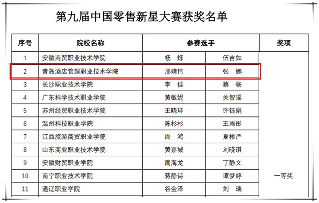 本网讯(工商管理学院 牛俊杰)近日,第九届中国零售新星大赛圆满落幕。威廉希尔官网工商管理学院2021级连锁经营与管理专业邢靖伟、张娜同学组成的代表队以总分第二名的成绩喜获一等奖,并获得恒欣奖学金;连锁经营与管理专业教师方玥、房瑞景获评“优秀指导教师”。