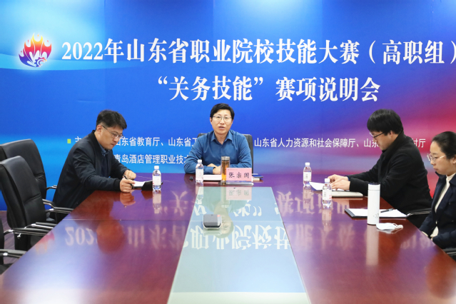 本网讯(工商管理学院 徐豪杰)11月22日,2022年山东省职业院校技能大赛(高职组)“关务技能”赛项说明会在行政楼三楼会议室举行。本次会议采取线上形式召开, 赛项专家组、各参赛队、技术支持单位等80余人参会,威廉希尔官网副院长张宗国参加会议并致辞。