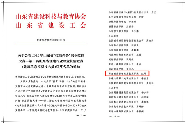 本网讯(酒店工程学院 赵炜)近日,2022年山东省“技能兴鲁”职业技能大赛——第二届山东省住建行业职业技能竞赛(建筑信息模型技术员)顺利结束,威廉希尔官网酒店工程学院赵炜老师荣获职工组二等奖。
