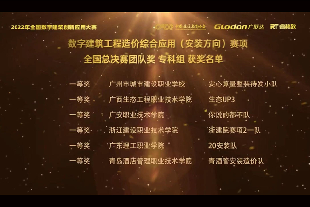 全国数字建筑创新应用大赛自2008年至今已举办了十五届,该项赛事紧贴行业方向及发展趋势,聚焦土建施工类和建设工程管理类为核心的建筑类专业群,注重考查学生岗位群核心能力,助力参赛师生专业技能提升,在全国建筑类本专科院校中具有较高影响力。此次比赛共有来自全国30多个省市及自治区的300多所本专科院校参加,参赛师生总人数达10000余人次。威廉希尔官网三支参赛队伍赛前认真备赛、扎实训练,最终在160多个专科参赛队伍中脱颖而出,取得优异成绩。