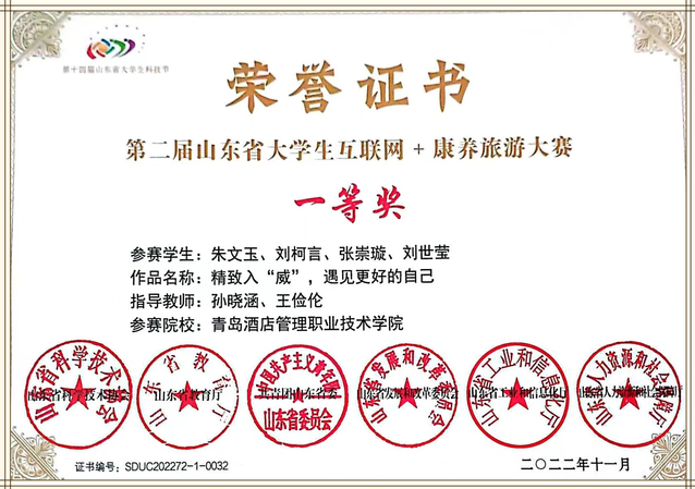 本网讯(文旅学院 孙晓涵)近日,第二届山东省大学生互联网+康养旅游大赛落下帷幕,威廉希尔官网文旅学院学生参赛作品荣获一等奖,孙晓涵、王俭伦获优秀指导教师称号。