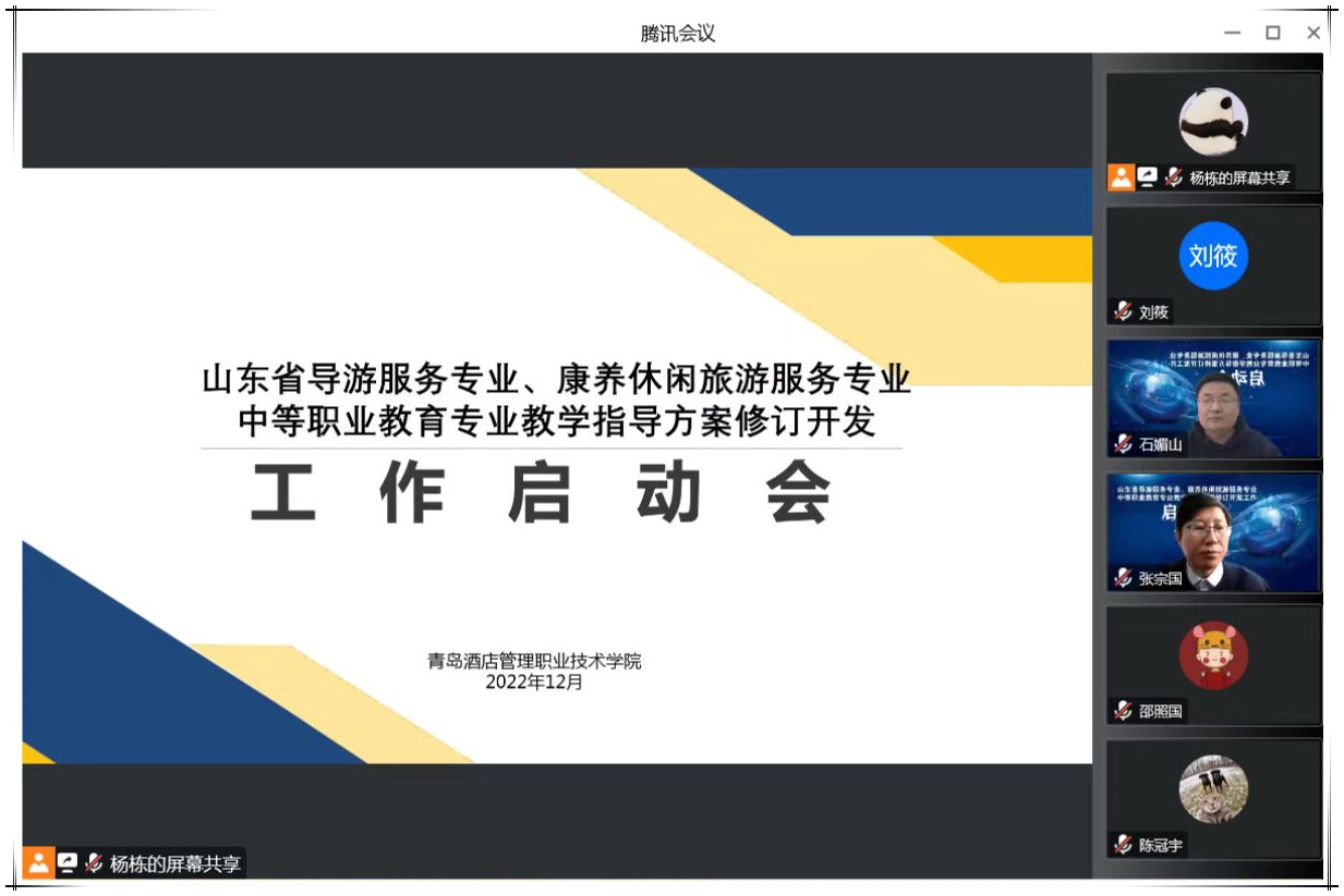 本网讯(文旅学院 刘筱)12月9日,由学校牵头的山东省导游服务专业、康养休闲旅游服务专业中等职业教育专业教学指导方案修订开发工作启动会在线上召开,学校副院长张宗国参加会议。