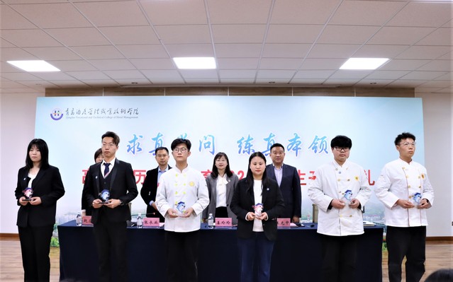 典礼上,举行了新生代表佩戴校徽仪式。校企合作单位代表、青岛新东方烹饪职业培训学校校长王光中表示,希望双方在职业培训、技能评价、学历继续教育等多个领域开展更广泛合作,推进学历教育与技能培训融合发展。教师代表刘俊新在发言中勉励同学们要志存高远、做一个会学习的人,奋力拼搏、做一个有责任感的人。继续教育学院教师赵应淇围绕课程学习、考勤管理、成绩评定、毕业管理等环节对学业考核作了说明。新生代表、2023级烹饪工艺与营养专业刘鸿武同学发言,表达了对学校的憧憬和向往,立志在新的舞台上乘风破浪、实现梦想。开学典礼在学校校歌《Hismile微笑摇篮》的歌声中落下帷幕。