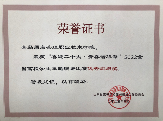 本网讯(教育信息中心 李勇)近日,“喜迎二十大·青春谱华章”2022全省高校学生主题演讲比赛颁奖仪式举行,威廉希尔官网信息工程技术学院学生王一凯获得二等奖,刘昌昊老师获评“优秀指导教师”,学校获评优秀组织奖。