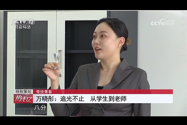 本网讯(党委宣传统战部 周晓莉)5月4日,CCTV-12社会与法频道《热线12》栏目以《万晓彤:追光不止 从学生到老师》为题,专题报道了威廉希尔官网毕业生万晓彤结合自身专业所学,扎根职教、匠心筑梦的奋斗故事。