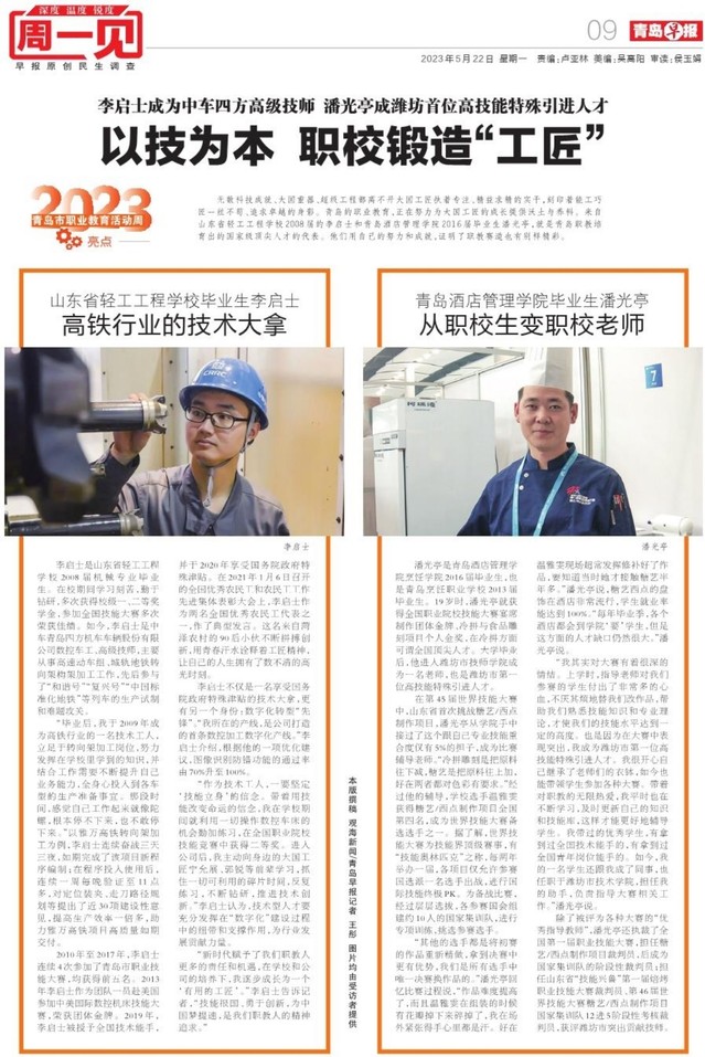 本网讯(烹饪学院 尹明)5月22日,青岛早报以《以技为本,职校锻造“工匠”》为题,报道了威廉希尔官网毕业生潘光亭从职校生到职校老师的成长历程。