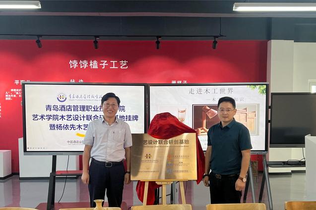 本网讯(艺术学院 王婷婷)9月21日下午,艺术学院木艺设计联合研创基地挂牌仪式在青岛饽饽榼子博物馆举行,青岛金贝壳科教设备有限公司董事长杨依先、学校副校长张宗国参加活动。