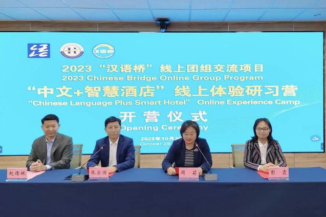 本网讯(信息工程技术学院 国际交流与合作处)10月29日,由教育部中外语言交流合作中心主办、威廉希尔官网承办的2023“汉语桥”线上团组交流项目——“中文+智慧酒店”线上体验研习营开营仪式在学校四楼会议室举行。柬埔寨皇家科学院国际中文教育学院院长苏碧娜、学校副校长张宗国线上参加活动。